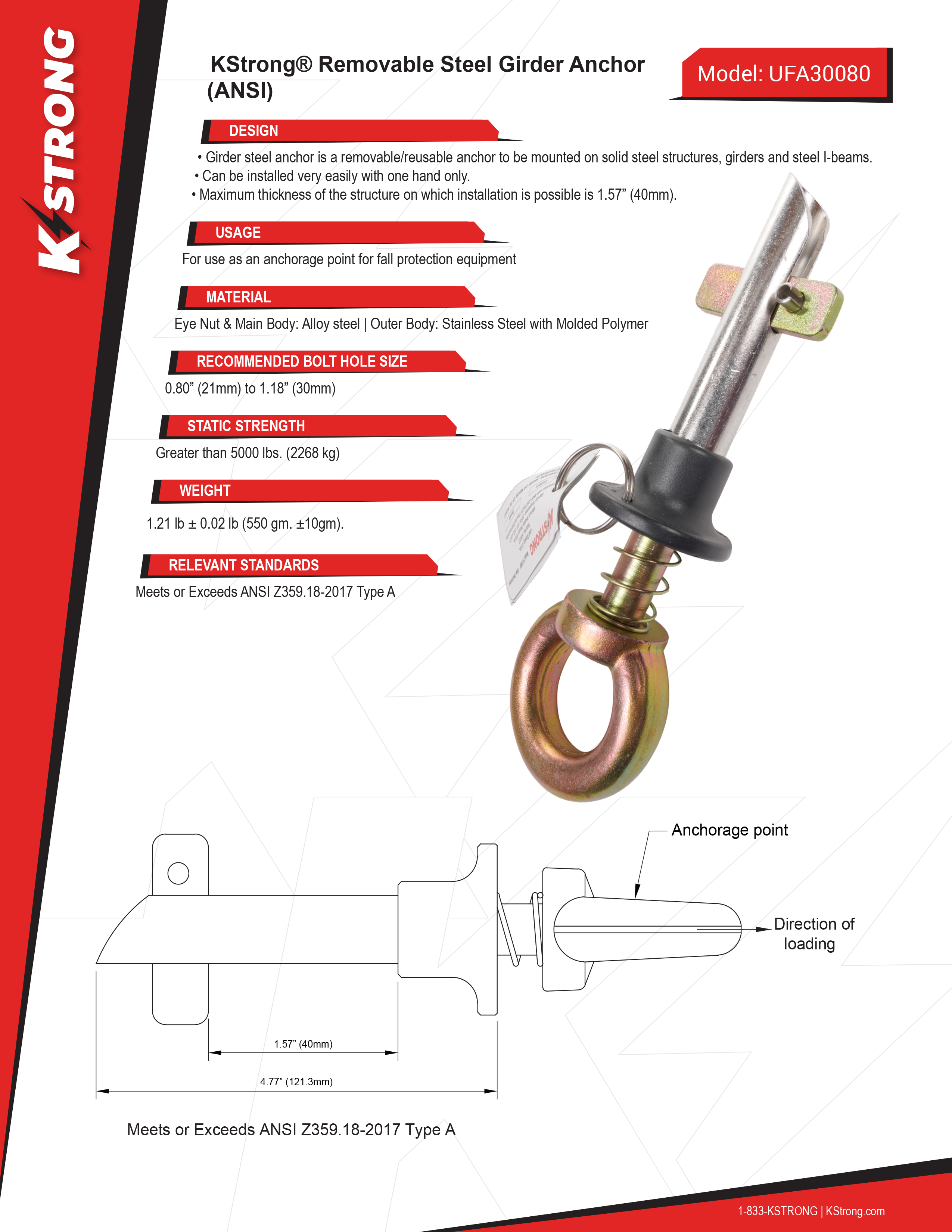 KStrong® UFA30080 Removable Steel Girder Anchor (ANSI)